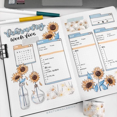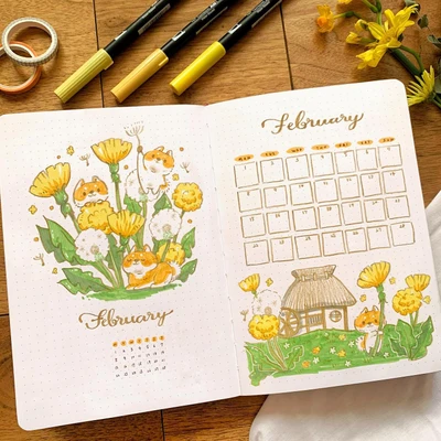 π‘πΌ “Step into a cottage garden with this whimsical February monthly overview. The hand-drawn flowers and quaint cottage details create a cozy and inviting atmosphere. This spread brings the charm of a blooming garden into your bullet journal, making it a delightful space to plan out your month. Let each day be as fresh and inspiring as a walk through the garden! π·πΏ”