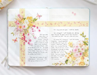 πΌ “This journal page exudes warmth and serenity, featuring a beautiful cross-shaped arrangement of yellow and pink flowers that frame the text. The soft, pastel hues of the flowers, combined with the delicate butterflies flitting about, create a peaceful and inviting atmosphere. Let the floral harmony of this layout bring a sense of calm and joy to your journaling experience.” π¦πΊ