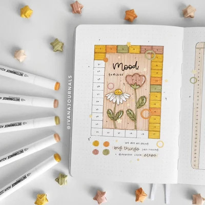 “Monitor your moods with this pastel-themed mood tracker featuring two lovely flowers. The soft colors and floral design create a sweet and fresh feel, making mood tracking a visually pleasing activity. πΈπΏ”