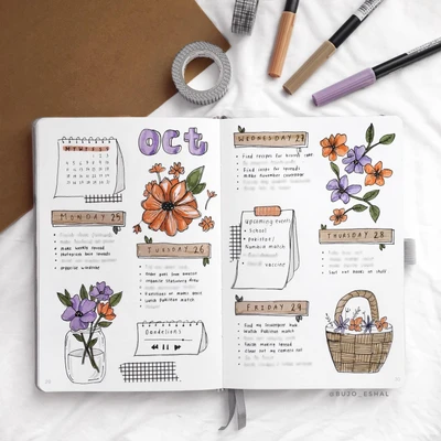 ππΈ “Capture the essence of autumn with this October floral weekly spread. Delicate, hand-drawn flowers in soft pastel shades adorn each section, adding a touch of elegance to your weekly plans. The warm, muted color palette reflects the changing season, making this layout perfect for staying organized with a hint of fall charm. π”
