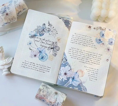 πΈ “This layout is adorned with delicate blue flowers, their soft petals gently cascading across the page. The cool tones evoke a sense of calm and introspection, making this the perfect space for quiet reflection. The subtle interplay between the flowers and the journal’s content creates a harmonious balance, inviting you to pause and appreciate the beauty of the moment. Let the tranquil blue blossoms guide your thoughts to a place of peace. πΌποΈ” π