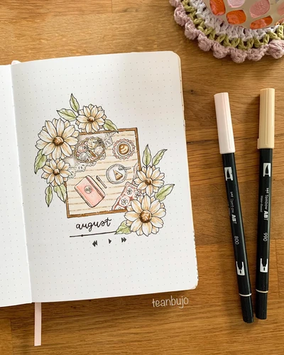πΌπ “Welcome August with this fresh and cheerful daisy-embellished cover page. The soft pastel hues and simple, dainty daisies frame the month, making it feel light and airy. This spread is perfect for those who appreciate subtle elegance and a soft, inviting vibe. Start your month with a gentle bloom! πΏ”
