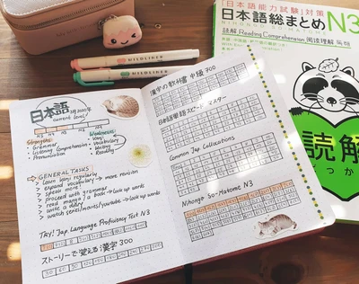 π Dive into your language learning journey with this meticulously organized journal spread. Featuring structured sections for vocabulary, grammar, and practice exercises, it ensures a comprehensive approach to mastering whatever language youβre learning. The addition of cute illustrations and pastel colors adds a fun and engaging touch, making your study sessions more enjoyable.πΌ