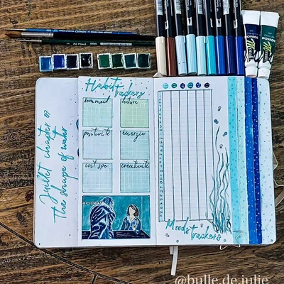 β¨β¨β¨ “Dive into the depths of creativity and self-improvement! ππ This calming bullet journal layout for July, with its oceanic theme, invites you to track your habits and moods with grace. π¬π The soothing blue hues and underwater illustrations create a tranquil atmosphere, perfect for introspection and growth. πΏβ¨ Let this spread inspire you to harness the power of your daily routines and emotions, transforming them into a beautiful journey of self-discovery and achievement. ποΈπ” π«π