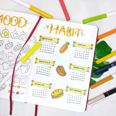ππ “Elevate your July habit tracking with this delightful bullet journal spread! π₯π The left page features a playful mood tracker using toast illustrations, while the right has a vibrant habit tracker with cute icons for each habit, like skincare and journaling. πΏπ° Each mini calendar helps you mark your daily progress, keeping you motivated and on track. πβ¨ Let this cheerful layout inspire you to maintain your habits and achieve your goals!” π¨π
