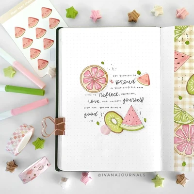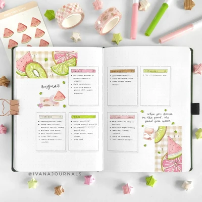 ππ “Brighten up your journal with this cheerful and vibrant spread! The cute fruit patterns and pastel colors make each page feel like a sunny summer day. Stay organized and motivated with a touch of fruity fun! ππ”