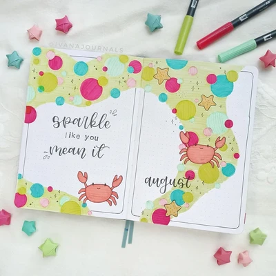 β¨ “Sparkle like you mean it! ππ¦ This delightful cover page for August features a cheerful crab and vibrant polka dots, setting a fun and positive tone for the month. Start your August with a sparkle! ππ ”