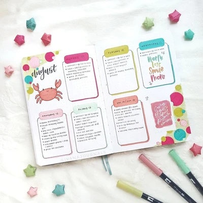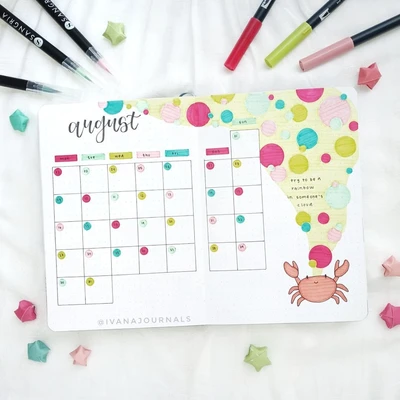 π “Bright and organized! ππ¦ This monthly calendar spread for August uses colorful dots to mark important dates. Stay on top of your schedule with a touch of fun and creativity. ππ”