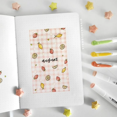 ππ¨ “Step into a world of fruity charm with this adorable cover page! The playful strawberries and citrus fruits bring a sweet and refreshing vibe to your bullet journal, perfect for starting a new month with a burst of creativity. Let these delightful details inspire your planning! π⨔