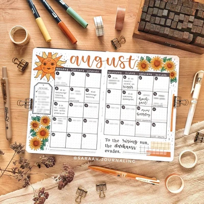 π “Welcome August with a burst of sunshine! This spread features a vibrant sunflower as the centerpiece, radiating positivity and warmth. The playful quote adds a motivational touch, making it a perfect start to your month.” π»π