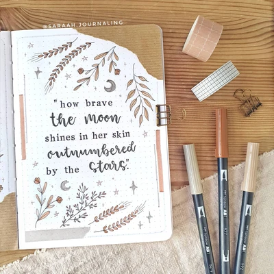 π “Embrace the beauty of nature with this quote page, decorated with earthy leaves and branches. The quote, ‘How brave the moon shines in her skin surrounded by the stars,’ serves as an inspiring reminder of resilience and beauty.” πβ¨