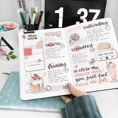 π “Dive into a food-themed layout with delightful illustrations of your favorite dishes. This spread adds a touch of culinary charm to your bullet journal, making planning your meals and tasks enjoyable.” π²ποΈ
