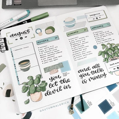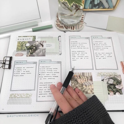 Welcome to the seventh part of our August bullet journal inspiration series! π This collection features an array of stunning monthly and weekly spreads, along with beautiful cover pages, all designed by the talented @autumnaldrich on Instagram. Her unique and creative layouts will help you stay organized and inspired throughout August. Explore these ideas and add a touch of artistry to your bullet journal!