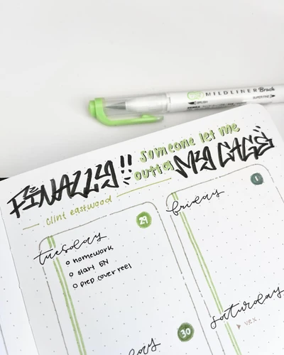 π “This dynamic spread with bold lettering and energetic design elements is perfect for a high-energy start to August. The use of green and black creates a striking contrast that draws attention to key tasks and goals.” ππ