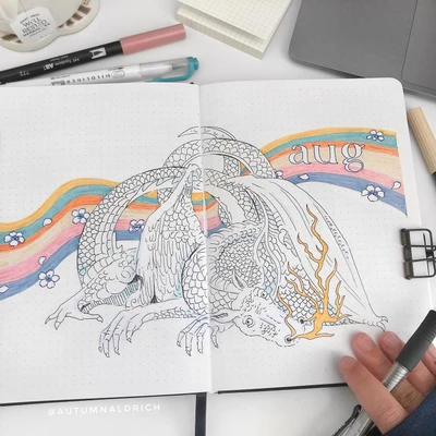 π “Dive into a fantastical theme with this intricate dragon illustration. The detailed drawing and rainbow accents bring a sense of adventure and creativity to your bullet journal.” ππ²