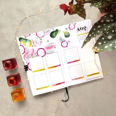 ππ “Bursting with color and energy, this fruit-themed August monthly spread is a feast for the eyes! The vibrant illustrations of tropical fruits bring a refreshing and lively feel to your planning. Each day is a new opportunity to savor the sweetness of life and stay organized with a splash of fun. Dive into your month with a fruity twist and a zest for life! ππ”