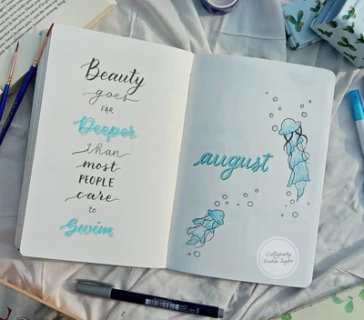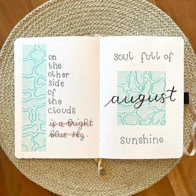 βοΈ “Embrace the sunshine even on cloudy days with this radiant journal spread. The soothing blues and uplifting quotes are a perfect reminder that every day holds a bit of magic. Let your journal be a place where sunshine meets serenity, brightening up your August. π𦔠βοΈ