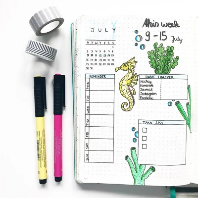 ππ’ “Say hello to July with an underwater adventure! π This playful spread captures the excitement of exploring new depths. π From the charming submarine to the vibrant marine life, it’s a delightful dive into creativity. π¨ Let this inspire you to embark on your own artistic journey, filling your bullet journal with the wonders of your imagination. π Dive deep, explore widely, and let your creativity flow! ποΈπ¦” ππ«