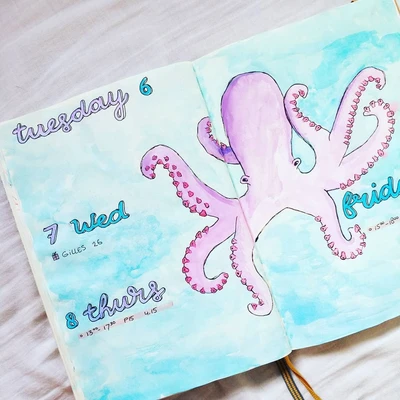 β¨β¨β¨ “Let your creativity unfold like the many arms of an octopus! ππ« This vibrant and whimsical spread brings the days of the week to life with its playful watercolor design. π¨π The octopus, a symbol of flexibility and intelligence, reminds us to adapt and embrace each day with curiosity and joy. π β¨ Each tentacle reaches out to new possibilities, encouraging you to fill your journal with thoughts, plans, and dreams. πποΈ Let this colorful and dynamic spread inspire you to dive into your own creative journey, making every page as unique as you are. ππ Happy journaling!” β¨πποΈ