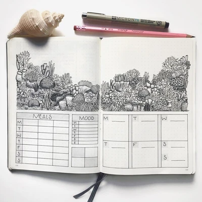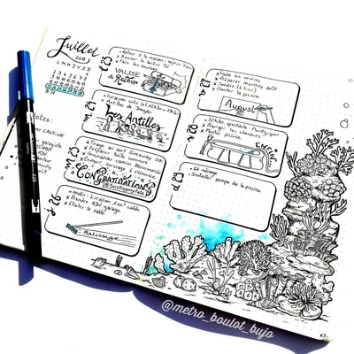 β¨β¨β¨ “Embark on a creative voyage with this captivating bullet journal spread! π’π The intricate marine illustrations transport you to an underwater paradise, making each day a new adventure. ππ The blend of detailed drawings and thoughtful planning creates a harmonious balance between art and organization. π¨ποΈ Every box is filled with possibilities, encouraging you to dive deep into your goals and tasks with enthusiasm. πβοΈ Let this spread be a reminder to explore your creativity, embrace new challenges, and make waves in your journaling journey. ππ Happy journaling!” β¨πποΈ