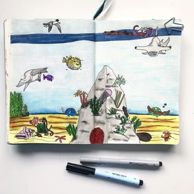 ππ “Explore the depths of creativity with this stunning underwater bullet journal spread! π¨β¨ The vibrant colors and intricate details, from the playful fish to the majestic sharks, truly bring the ocean to life. This artwork reminds me of the beauty and mystery of the sea, inspiring me to dive into my own artistic adventures. Let your imagination swim wild and fill your pages with the wonders of the underwater world! ποΈπ”