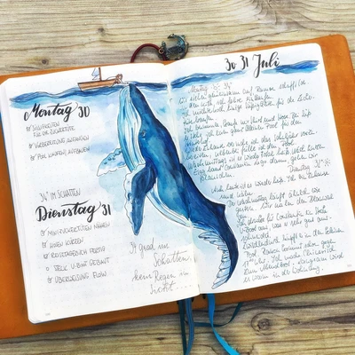 πβ¨ “Dive deep into your creativity! π This stunning bullet journal spread features a majestic whale and captures the beauty of the ocean. πποΈ The blend of blues and the detailed illustration bring a sense of calm and wonder. π¨π Let this inspire you to explore new depths in your journaling and make every page a masterpiece. ππ Embrace the waves of inspiration and let your imagination swim freely! ππ