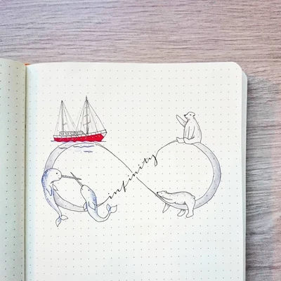 πβ¨ “An evening of doodling turns into a journey of infinite possibilities! π³β΅π» This creative spread beautifully weaves together the elements of the sea and the arctic in a symbol of infinity. πβοΈ Let this inspire you to embrace the endless opportunities for creativity and exploration in your bullet journal. ποΈ Every stroke tells a story, every doodle opens a new world. Embrace the infinite creativity within you!” ππ