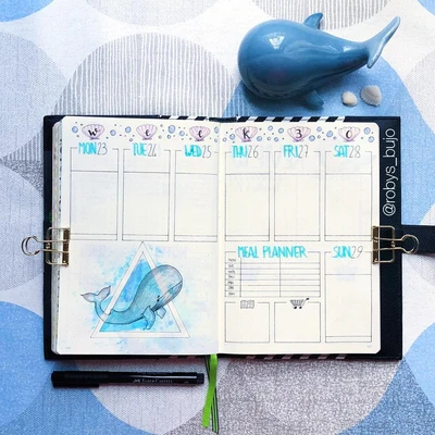 ππ “Set sail into a week of productivity and creativity with this stunning ocean-themed spread! π The gentle hues of blue and the majestic whale remind us of the vastness of our potential. π Let each day be a dive into new adventures, and let the meal planner keep your journey smooth and well-nourished. π½οΈ Embrace the calm and the power of the sea, and let your bullet journal be your guide through the waves of the week ahead. ππ” π π