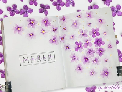 “Add a pop of color to your March spread with these beautiful purple flowers. πΈπ The vibrant petals create a joyful and uplifting mood, perfect for welcoming the new season. Let this layout inspire you to embrace the beauty and energy of spring. πΏβ¨”