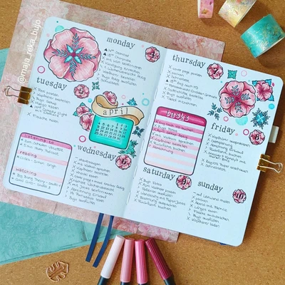 “Embrace the beauty of spring with this stunning April spread! π·π The pink blossoms create a vibrant and lively atmosphere, perfect for celebrating new beginnings. Let this page inspire you to bring a fresh perspective to your goals and plans. πΌβ¨”