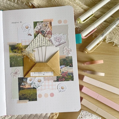 “Capture memories in an envelope! π This unique spread features an envelope design, perfect for storing little mementos and notes. πΈβ¨ It’s a creative way to keep your precious moments close at hand. πΏ”