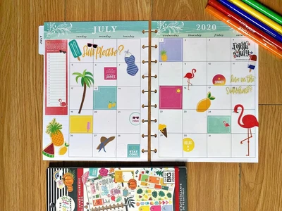 π Hello July! π It’s time to embrace the summer vibes with a colorful and vibrant planner spread! Despite the ups and downs, nothing is going to dampen my summer spirit. Just look at these cheerful decorationsβflamingos, pineapples, and sunshades galore! βοΈπ΄ How are you spending your summer? Remember to stay cool and enjoy every sunny moment. β¨ Have a fantastic day! π
