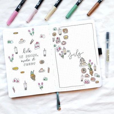π°β¨ “Life is short, make it sweet! ππΉ This delightful bullet journal spread for July is filled with adorable treats and cheerful doodles. ππ§ The whimsical designs and pastel colors bring a smile to your face and add a touch of sweetness to your planning. ππΈ Create your own deliciously cute journal pages and savor the little moments! ππ Let’s make this month as sweet as can be! ππ” π¦π‘
