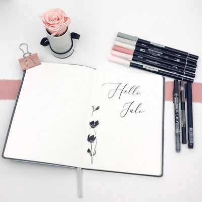 “Welcome to July, a fresh start! π€οΈβ¨οΈ This stunning bullet journal spread is a perfect reflection of a new beginning. Staying true to her signature colors - black, and grey - the author has created a beautifully minimalistic design that exudes elegance and sophistication. π οΈβ€οΈ As we dive into the new month, let’s take a moment to appreciate the little things and make every day count. Wishing you all a wonderful week ahead, filled with love, laughter, and productivity! ππ«”