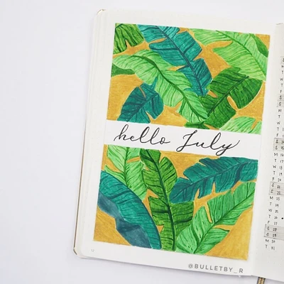 β¨β¨β¨ “Hello, July! π This beautiful bullet journal spread is a perfect burst of summer vibes. π The vibrant greens of the leaves against the warm, golden background create a stunning visual that invites you to embrace the new month with creativity and joy. πΏβ¨ It’s not just a journal; it’s a canvas where your ideas and dreams can flourish. π Let this colorful design inspire you to start your own bullet journal journey and fill each page with your unique style and personality! π¨π” π»π