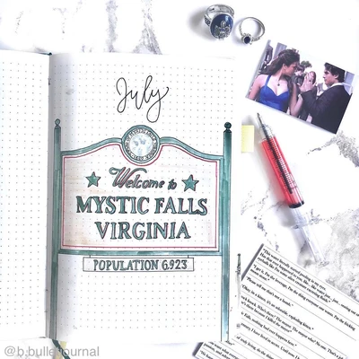 β¨β¨β¨ “Welcome to July in Mystic Falls, Virginia! π This captivating bullet journal spread is a perfect nod to the beloved TV series, The Vampire Diaries. π§ββοΈπ§ββοΈ The elegant lettering and charming sign design make it a delightful entry for the month. ποΈπ Let this creative spread transport you to a world of mystery and intrigue, and inspire you to bring a touch of magic to your own bullet journal. π§ββοΈβ¨ Embrace your inner artist and let your imagination run wild as you document your journey through the month. π𨔠ππ