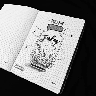 β¨β¨β¨ “Capturing July in a jar! πΊβ¨ This elegant bullet journal spread is a perfect blend of simplicity and creativity. The delicate details of the leaves and the whimsical fireflies dancing around the jar evoke a sense of calm and wonder. ππ This monochromatic design proves that beauty lies in simplicity, reminding us that even the smallest details can make a big impact. π€βοΈ Let this serene illustration inspire you to create your own tranquil and beautiful bullet journal spreads. Embrace the art of journaling and let your creativity flow! πΏποΈ” πΈπ«