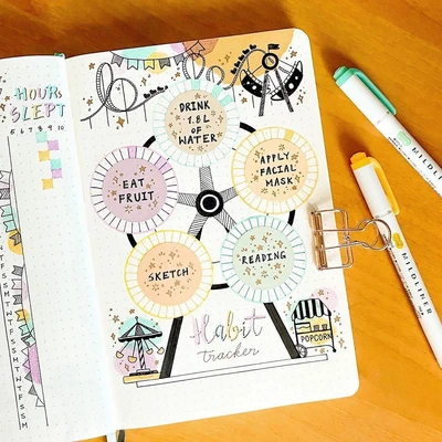β¨β¨β¨ “Step into a world of creativity and organization! π This delightful habit tracker is not just a tool, but a piece of art! π¨ From the colorful Ferris wheel design to the charming details, every element invites you to embrace the joy of planning. π β¨ The pastel colors and playful motifs remind us that keeping track of our habits can be fun and motivating! ππ‘ Let’s turn our daily routines into a whimsical adventure, one doodle at a time! βοΈπ” ππ