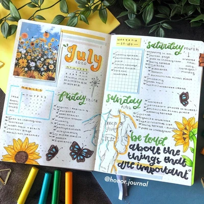 π»β¨ “Embrace the magic of planning with this beautiful bullet journal spread! πΌπΏ The vibrant colors and intricate designs of July invite you to organize your days with joy and creativity. π π Each page bursts with sunflowers, butterflies, and motivational quotes, turning your daily tasks into a delightful journey. π¦β¨ This journal reminds us that planning can be both productive and fun, inspiring us to stay focused and mindful. ππ» Let your creativity bloom and your goals flourish with every page! βοΈπΈ” ππ