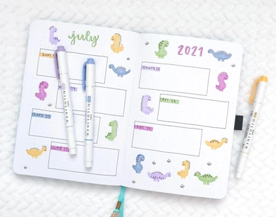 “Aww, what a delightfully adorable dinosaur-filled weekly spread! π¦π¨ The author has done an amazing job of bringing these prehistoric creatures to life on a July calendar. The bright colors and playful designs make me feel happy and carefree π. It’s so refreshing to see someone express their creativity and passion so clearly. Overall, this weekly spread is a perfect way to brighten up anyone’s day and add a touch of whimsy to their planner β¨.”