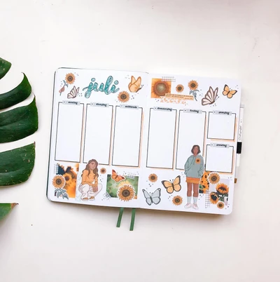 π»β¨ “Embrace the warmth of July with this beautiful sunflower-themed bullet journal spread! ππ¦ The vibrant sunflowers and butterflies bring a touch of sunshine to your planning, making each day feel bright and cheerful. πΌπ Let this spread inspire you to fill your month with positivity and creativity. ππ Celebrate the beauty of summer and let your journal bloom! ππ” π»ππ¦