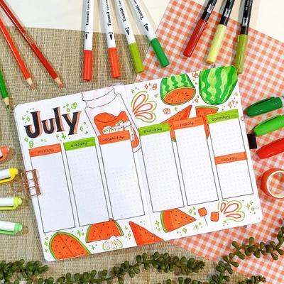 π»β¨ Kicking off July with a refreshing new planner and already obsessing over this adorbs watermelon spread! ππ The combination of green rind and juicy red flesh is too cute! π Who else is loving summer? π Wishing you a fantastic day! β¨"