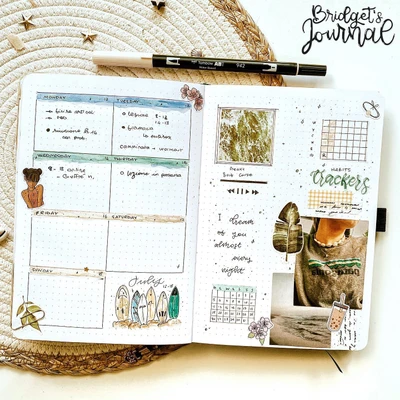 πποΈ “Organize your week with a touch of creativity and calm! This beautiful bullet journal spread blends practical planning with soothing, artistic details. πΏβ¨ From the serene images and habit trackers to the charming doodles, itβs a perfect reminder that planning can be both productive and enjoyable. π ποΈ I love how this layout balances functionality with a personal touch, making each day feel a bit more special. Let this inspire you to create a journal that reflects your unique style and helps you stay on track. πΌπ”