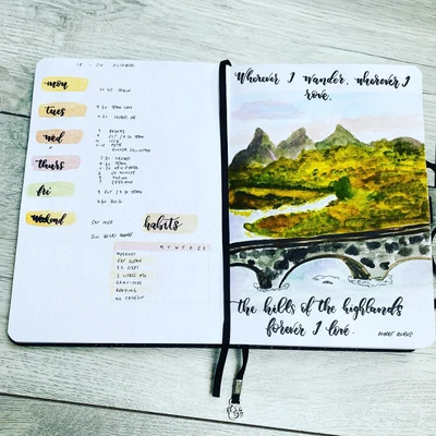 ๐โ๏ธ “Kick off your week with a breathtaking travel-themed cover page! Featuring a beautiful landscape painting, this spread is perfect for those with a love for adventure. Let the serene scene inspire your daily tasks and remind you of the places you dream to visit. ๐๐ ”