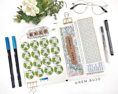 ๐ฟ๐๏ธ “Combine functionality with elegance in this beautifully designed spread. With a focus on habit tracking and greenery-inspired elements and travel, this layout helps you maintain your routines while enjoying the beauty of nature. Perfect for nature lovers and organized planners alike. ๐๐๏ธ”