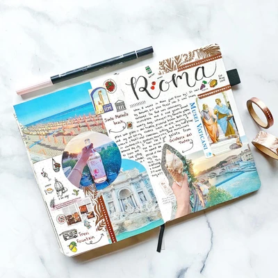 “Explore the charm of Rome with this detailed travel journal page. From iconic landmarks to personal notes, it encapsulates the essence of the Eternal City. Great for reminiscing about past visits or planning new explorations. ๐ฎ๐นโ๏ธ”