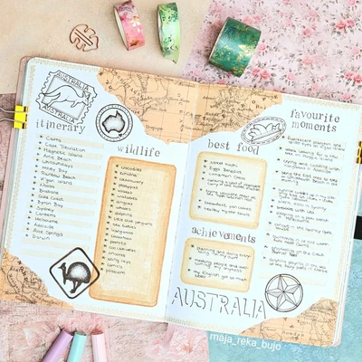 โจโจโจ “Australian Adventures! ๐ This spread captures the essence of Australia with its beautiful wildlife and delicious food. ๐จ Let the journey through this vibrant country inspire your own travel plans and dreams. ๐ด” ๐