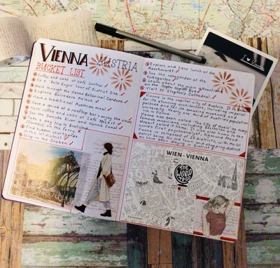 ๐ฐ๐ “Plan your next adventure with a detailed and vibrant spread dedicated to Vienna. Packed with notes, sketches, and a list of must-see spots, this layout is perfect for documenting your travel plans and experiences. Get ready to explore and make unforgettable memories! ๐บ๏ธ๐”