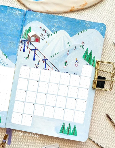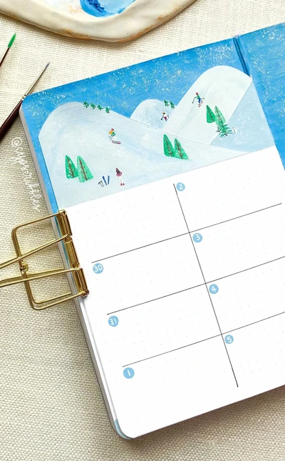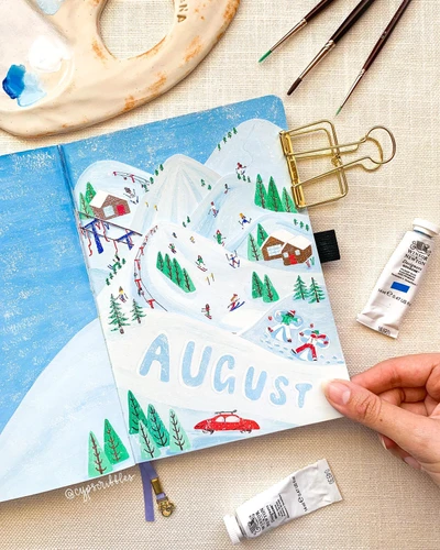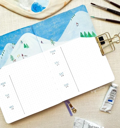 π² “Winter in August! βοΈπΏ This unique spread brings a cool and refreshing vibe to your planning with beautiful mountain and snow illustrations. Stay organized with a touch of winter magic. πΈπ ”