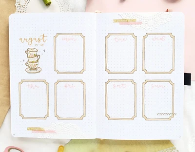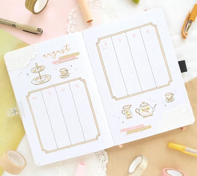 π “Organized August! π»π This clean and elegant spread provides ample space to plan your month, featuring lovely tea-themed illustrations. Keep your schedule beautifully arranged. πΈπ”